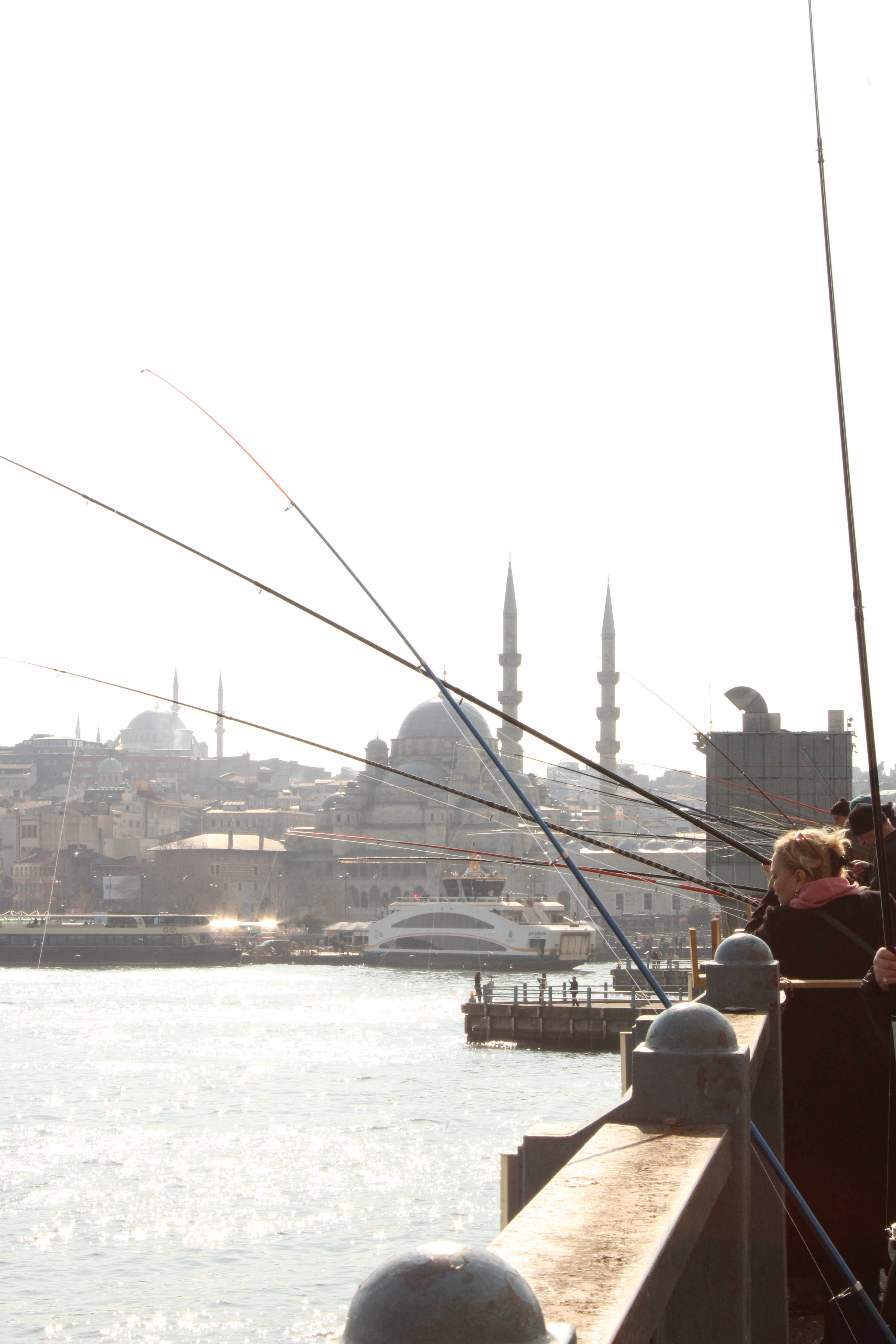 Many fish the golden horn on the Galata Bridge