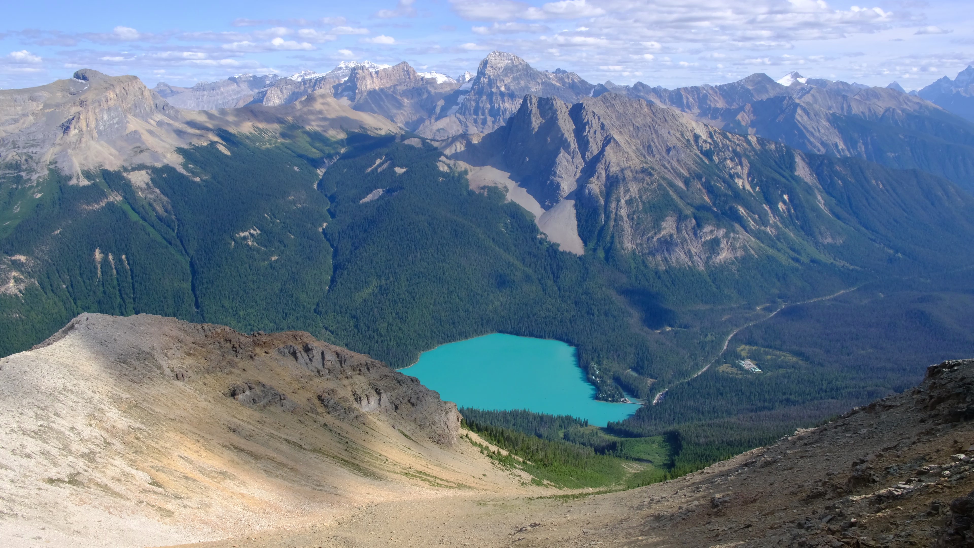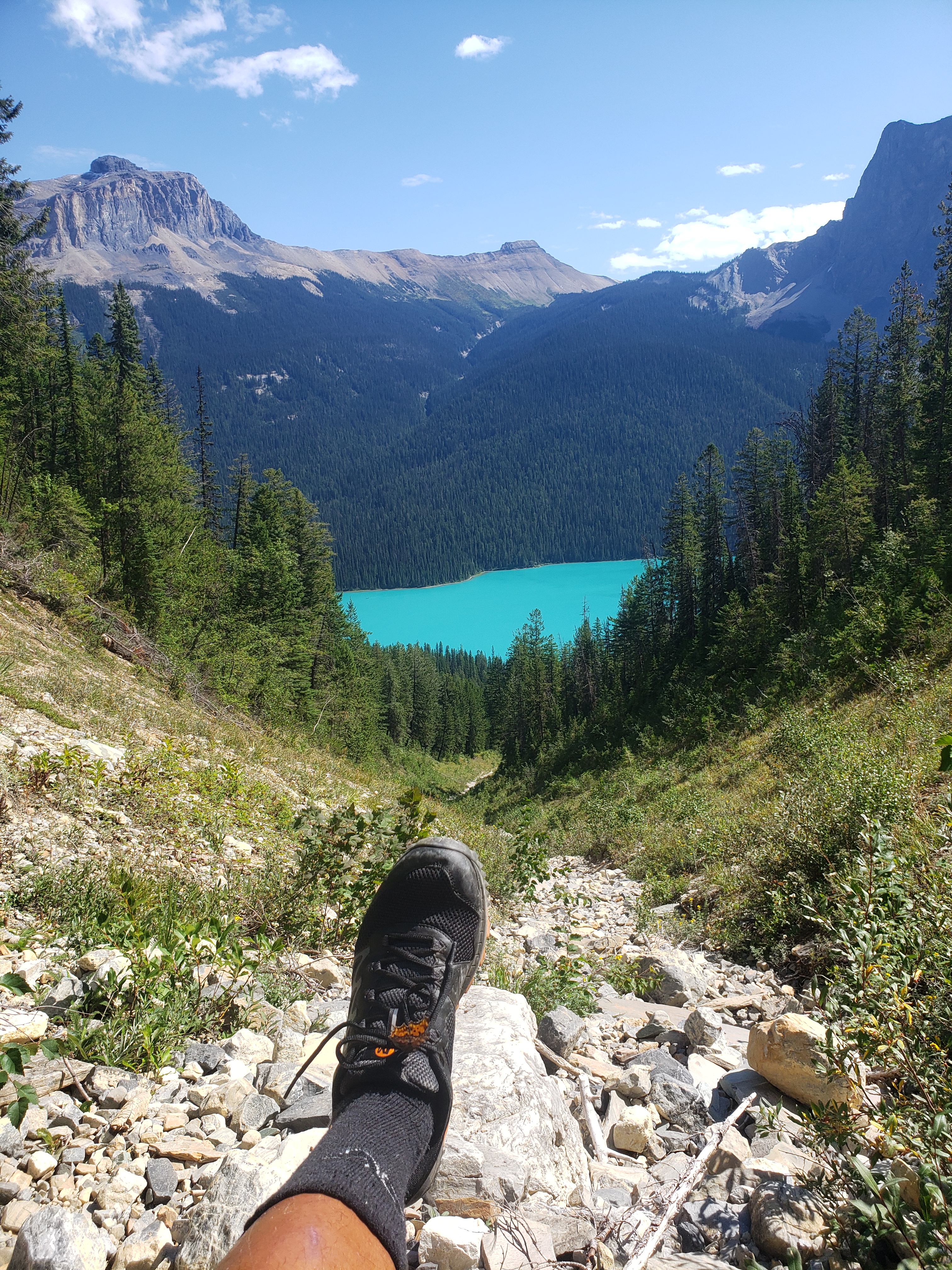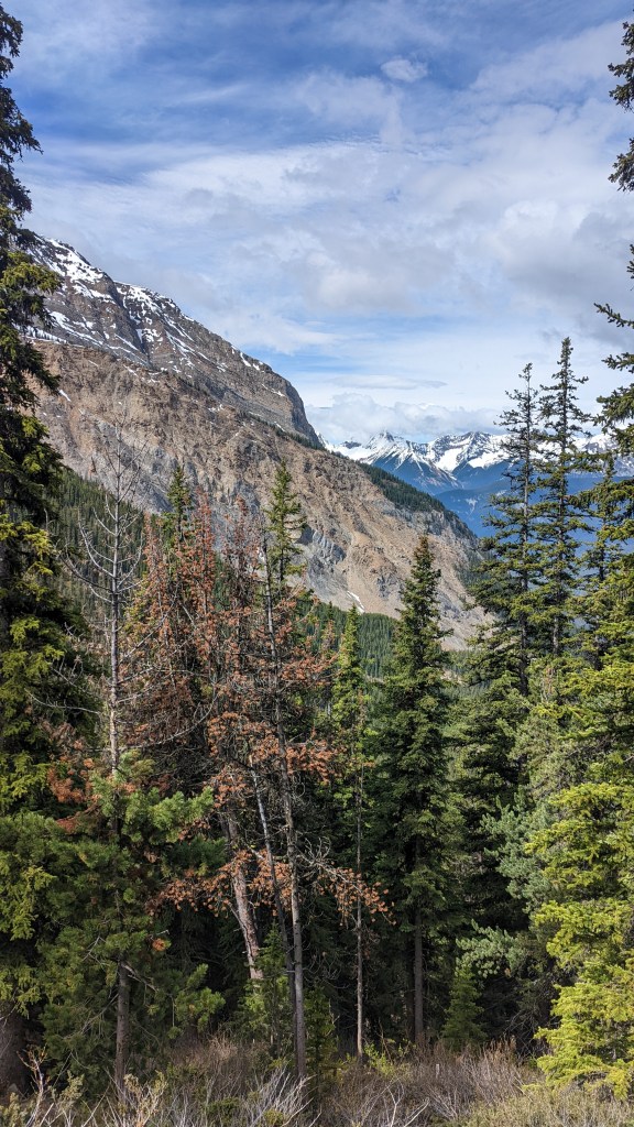 All around the iconic Emerald lake are peaks waiting to be conquered. I planned to do the Emerald Peak hike. On the linked All Trails hike, it is supposed to be a 10.5km loop with over a thousand meters of height gained. This is a pretty hard and long hike. The views are plenty worth it, especially when one gets a bit of elevation out of the trees to truly see the views all around.