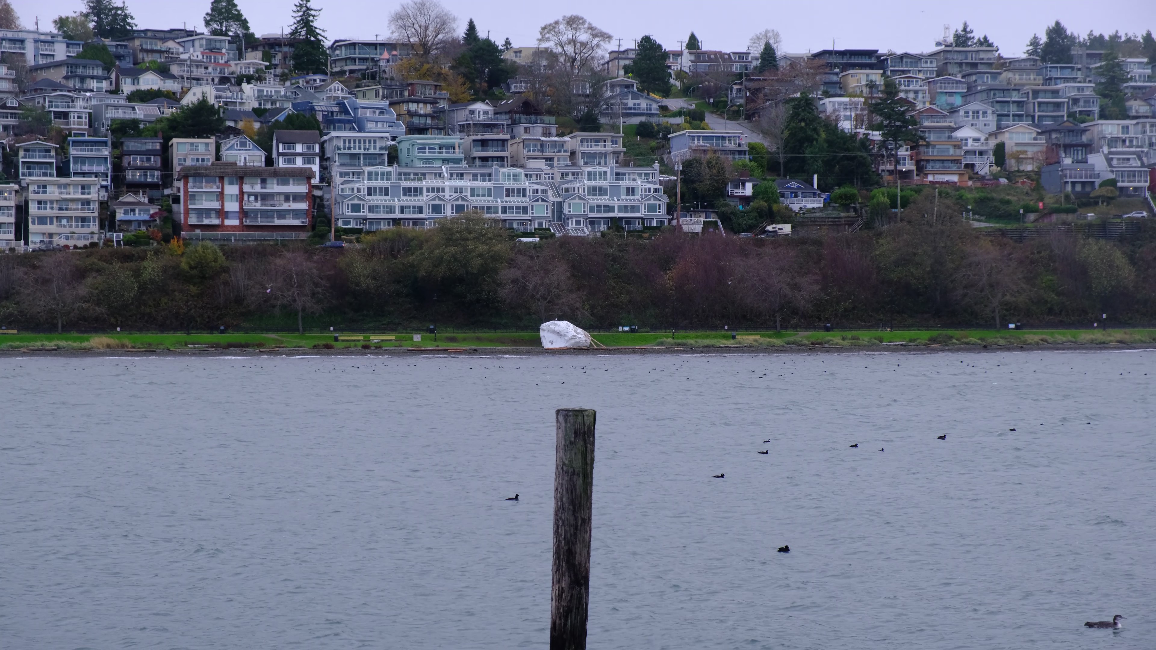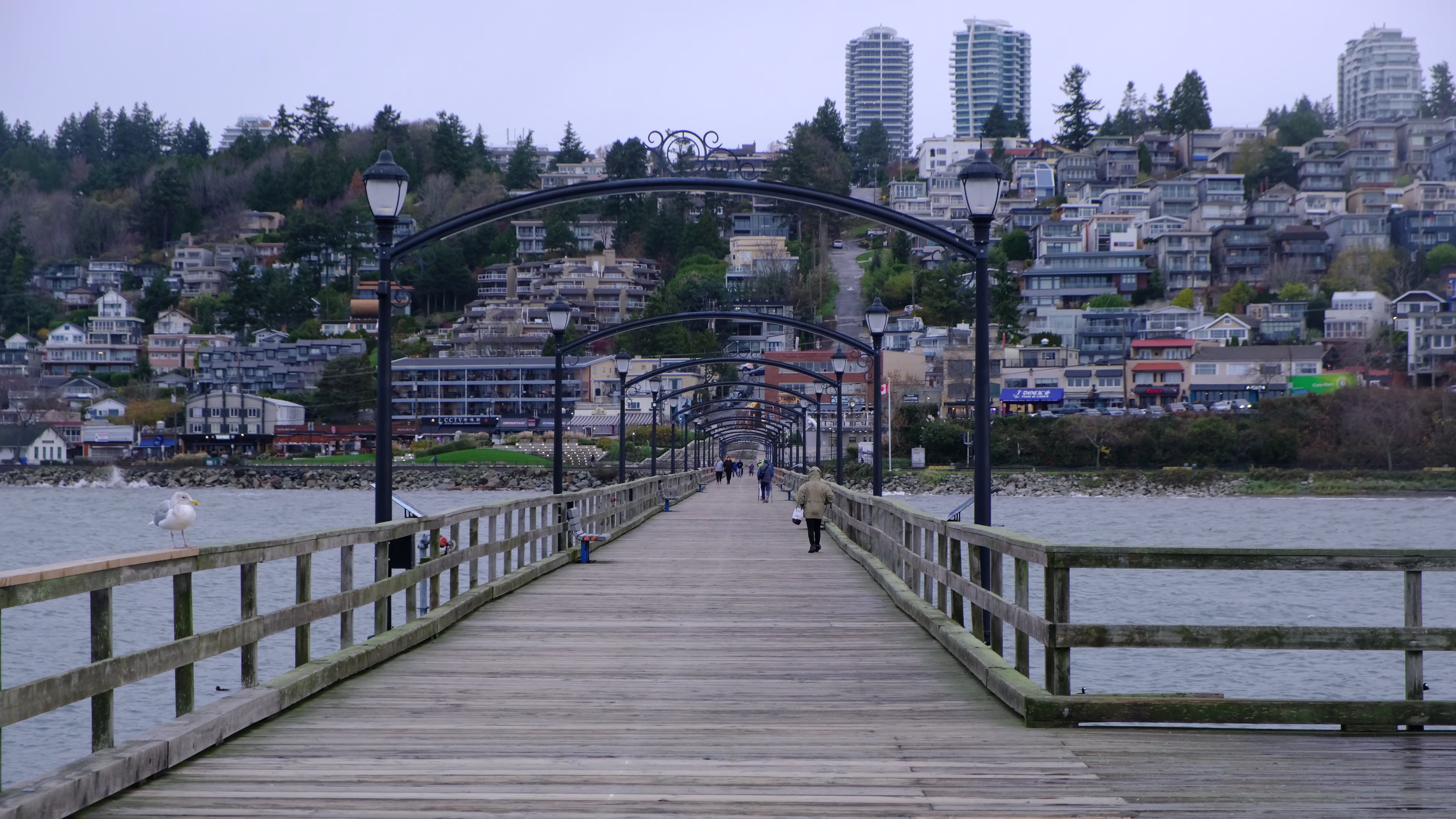 I had visited during the late fall (November 11th) and the city was very quiet. It was a drab, gray and wet day but I could not help but feel great. I was moving on to new adventures and the whole town was dead quiet. I had no problem getting parking. The weather gave a great vibe and the whole place was beautiful. Even I could not help but like the small little painted white rock on the beach. I say small since I only saw it from very far on the longest Canadian pier, but in reality its quite big in person.