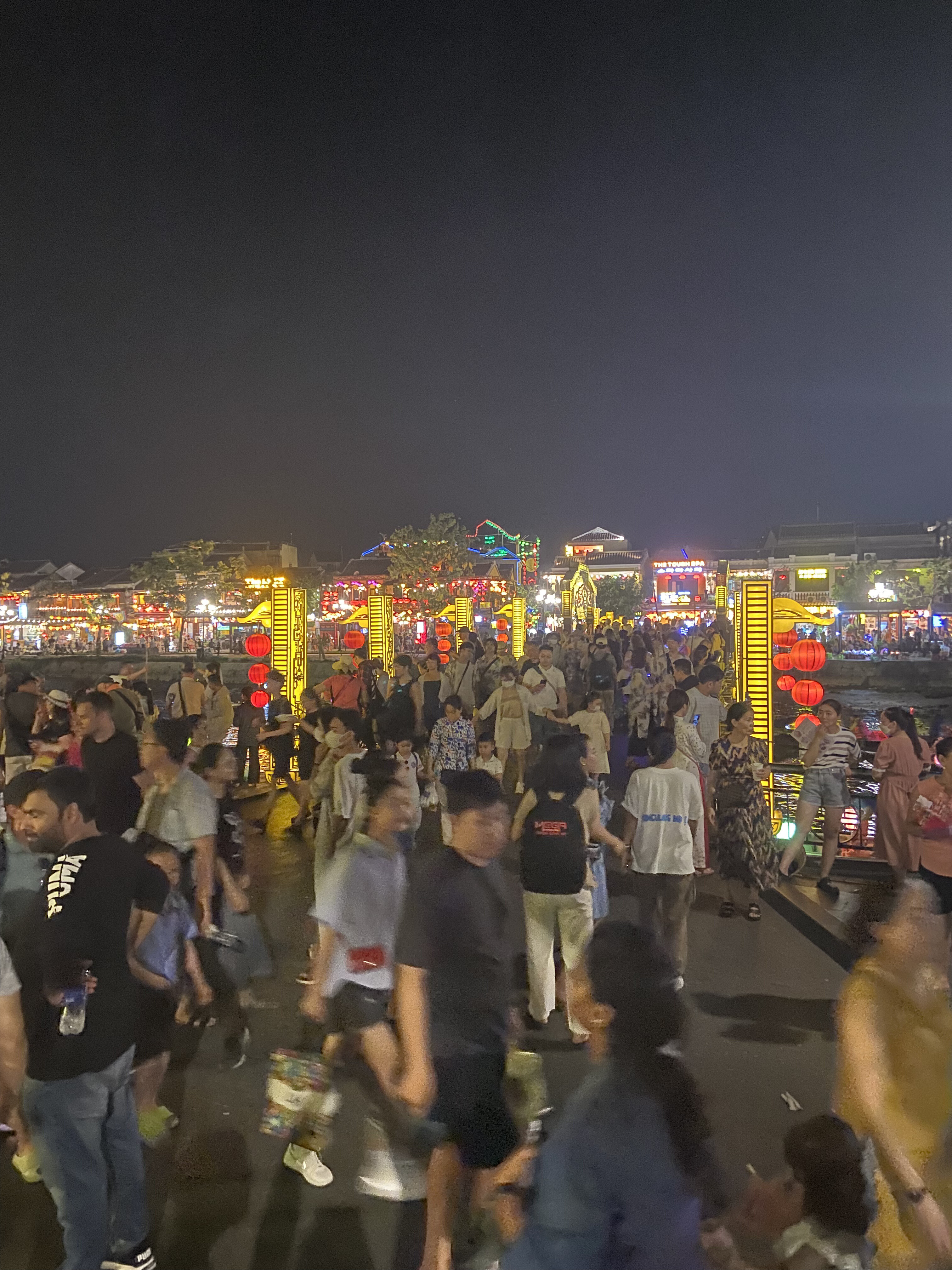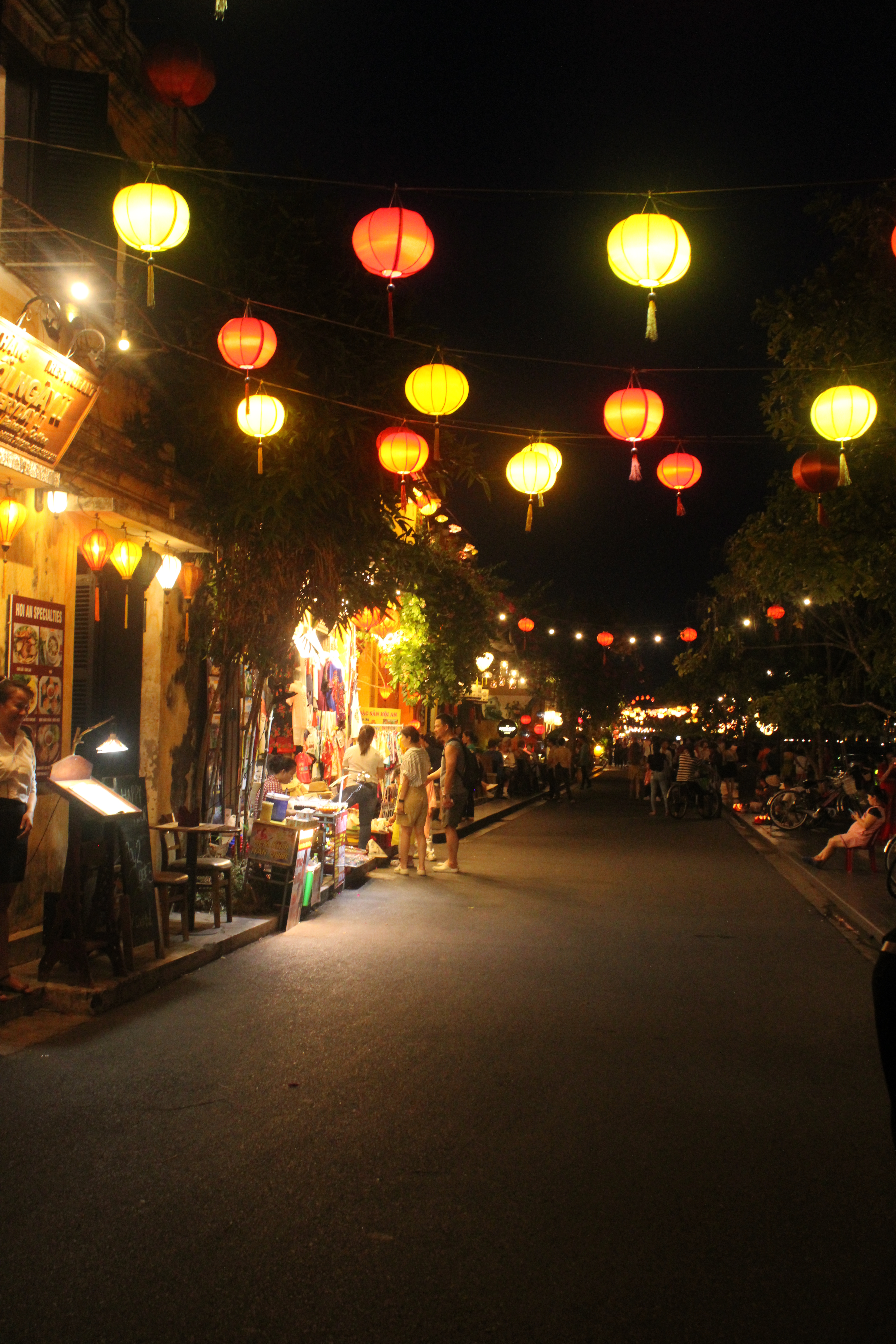 During the hot summer days, Hoi An is a ghost town. Shops are open, services are available, shopkeepers tend to their storefronts but there are hardly any crowds nearby. As the sun recedes away, the crowds and the tour busses start pouring in. In just a matter of minutes, the ghost town hums with life. In an hour the streets will be packed. The lights of the boats in the river like fireflies in a field; except these fireflies number in the hundreds.